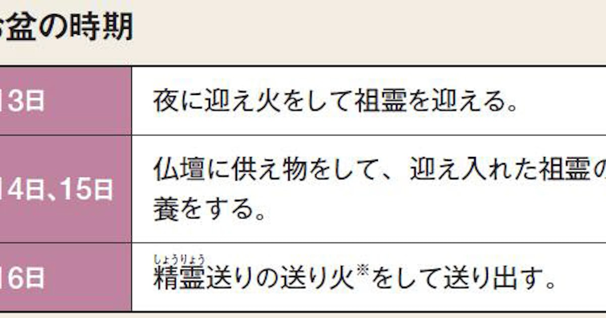 夏の一大行事「お盆」。全国的には毎年8月13日〜16日に行われ、家族や親族が集まり、先祖の霊を迎えて供養します。