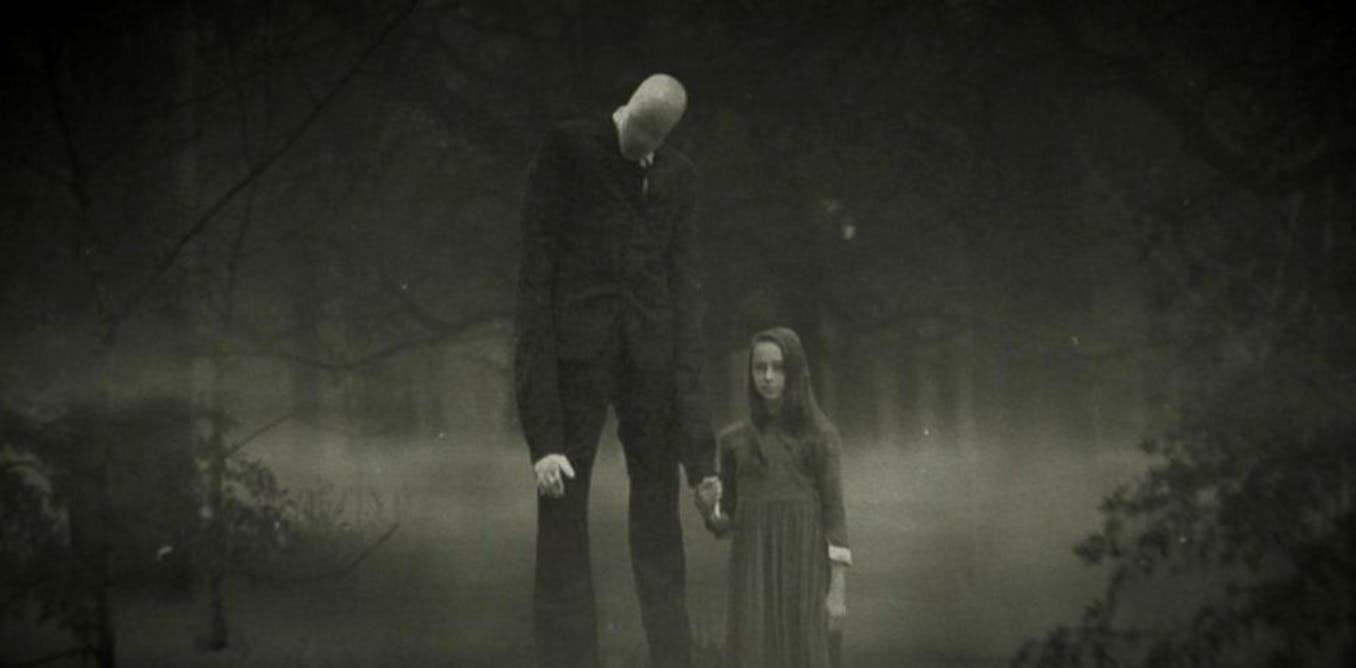 黒いスーツを着て、異様に背が高く、顔のない人影――そんな姿で描かれるスレンダーマンは、森や子どものそばに現れるという設定とともに、多くのユーザーによって画像やストーリーが投稿され、ネット文化の中で急速に広まっていきました。